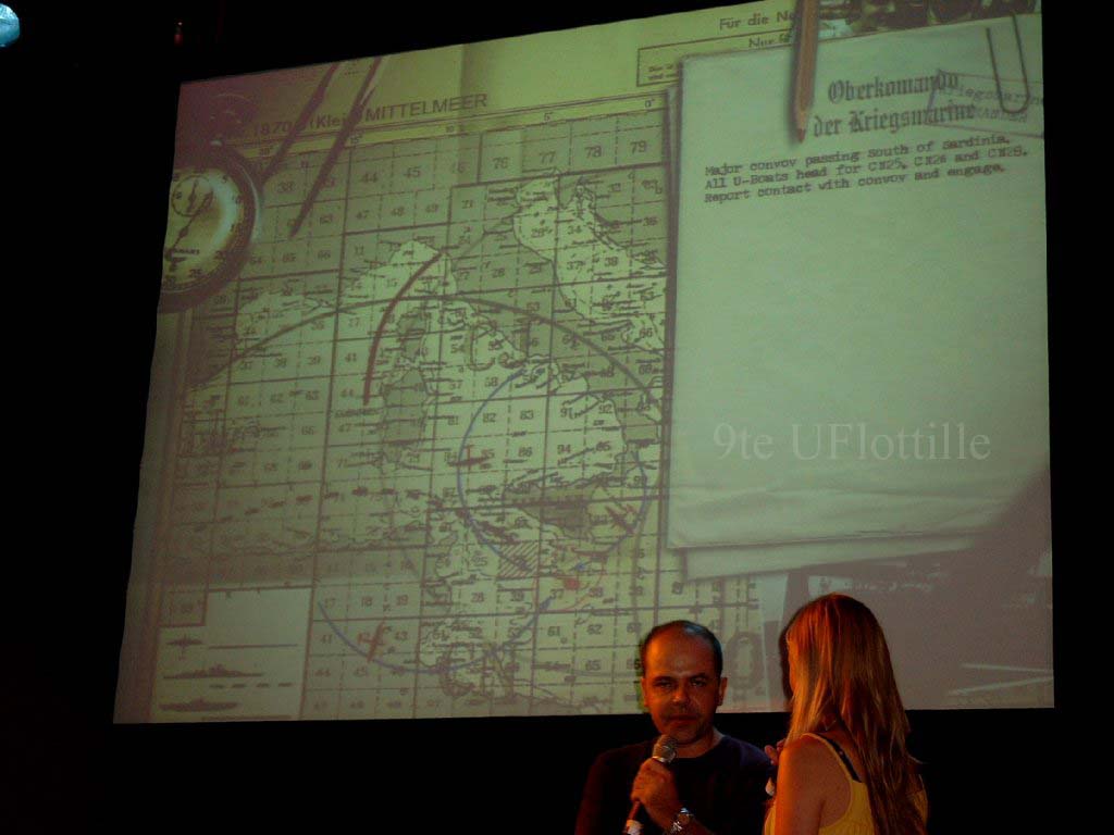 Report by Eagleeyesix. Translated to English by Doc 'Bleichrodt' Snyder The 9th Flotilla was invited to this year's Game Convention, held in Leipzig, Germany, for a behind-closed-doors-preview-presentation of SH III. The "man at the guns" to represent the 9th Flotilla was Eagleeyesix. Here his report: The two devolpers attending to the GC with SHIII were Florin Boitor and Tiberius Astianax Lazar. Here some pics of these nice guys. I apologize not having been able to provide you with more photos, but due to some malfuntion of my camera, there's only a few shots of the game itself. But no need for being too disappointed - there's nothing new in graphics, so if you've seen the screenshots released before, you've seen the game at its' current state of development. And for pessimistic ones amoung you - yes, the game really looks like in the screenies. SHIII's starup screen: Tiberius Astianax loaded the first szenario, a convoy battle in the Mediterranean, south of Sardinia. I had the possibility to actually play the game for about five minutes, so here's a summary of my experiences: I got the chance to continue playing a scenario started up by the developers before and fire some torpedos at a tanker. While the devolopers explained, an air raid of the German Luftwaffe with Ju-87 Stukas and Ju-88 bombers took place in the game. It is possible to place the camera inside the attacking plane which allows the player to virtually take place inside an aircraft, it's pretty much like playing IL-2. Then I fired 2 T IV G7E Falke torpedos (acoustic eels) at a tanker that constantly changed its course since several vessels had already been hit before. The torpedos began to lock on to the tanker's screws' sounds and finally hit. They showed me the torpedo loading screen that looks pretty much like the one used in AOD: differnet types of torpedos are marked by different colors, the screen informs the player on re-loading times and the ammound of remaining torpedos. I had the posiibility to ask some questions during the private presentation... Question 1: What about the the multiplayer part at the time being? The multiplayer part hasen't been finished yet, they are currently working on the main issues of the game, but it will be possible to play with up to 8 players in co-op. Question 2: Will there be a DC2? We, and other flotillas, really enjoy playing in teams. Yes! Provided that SHIII will become a financial success. Question 3: How much does the crew management affect realism? The influence is rather big, it will simulate the circumstances while being at sea. The crew's morale will decrease when being hit, taking damage, during storms and through crew members dying. This will have an impact on the crew's efficiency. Therefore, the player should rather decide whether to continue patrol or better head back for harbour. The commander will always need to have on overview on what his crew is doing at the current moment. Let's say, if he forgets to call back his men on lookout duty before diving, they will have to jump into the boat to avoid drowning. This, again, will have a negative impact on the crew's morale. On the other hand, you will be able to promote crew members, or hand out medals, which will have a positive effect on the crew's morale. If the boat takes damage, the commander is able to put together work groups and place them in the relevant stations to repair leaks, put out fires etc. At the beginning, crew members will only have one single ability, but it is possible to train them on multiple assignments. For example, a torpedo man can, after having completed some training, also be used in the engine room, which may come out to be extremly helpful in case of crew members dying. Question 4: How powerfull will AI be? It will be very powerfull. If, for example, a torpedo's trail gets recognized, ships will immediately change course and escort vessels will commence searching for the U-Boat. At bombing raids, ships will start zig-zagging to avoid being hit. The pilots will have different capabilities and states of experience, too, and therefore won't hit each time. Escorts will try building a team to hunt a U-Boat. In addition, they showed me a stormy scenario and how waves affect the boat. It is said to feature waves with heights of several meters, at this scenario, it really looked impressive. Spray clashing against the bow and whitecaps dancing on the waves. Even inside the boat, I could feel the heavy sea, with the sub rolling back and forth - I don't recommend this realsim setting for seasick people ![]() Freighters will carry different cargo, from tanks over aircraft parts up to ammunition, all of this will be in the game. The realism goes that far, that it's better not to surface in the close proximity of a ammunition freighter after launching a torpedo at it... the resulting explosions might cause severe damage to the U-Boat. Also, when a freighter goes into an inclined position, its' cargo may slip down the deck - this even works for aircrafts on a carrier! A ship's sinking behavior also depends on where it had been hit. Each vessels I saw sinking showed different behavior and chunks and crates remained at the sinking position. To conclude my survey, here some pics... i admit that quality isn't too good due to problems filming the monitors. I hope you'll be able to recognize something. The entire demonstration took about 20 minutes - needless to say, that time rushed away like hell and it was impossible to show every single detail. Marc of Ubi and the two developers were given a little gift - 9th-Flotilla-made sawfishs of metal. I would like to thank the administration of the 9th Flotilla and Marc of Ubi for this outstanding occasion! Marc was very friendly and I'd do this again at once! I hope I was able to give you a good impression of SHIII - and thanks again. |